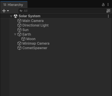 This is my Solar System project. I have the following elements: